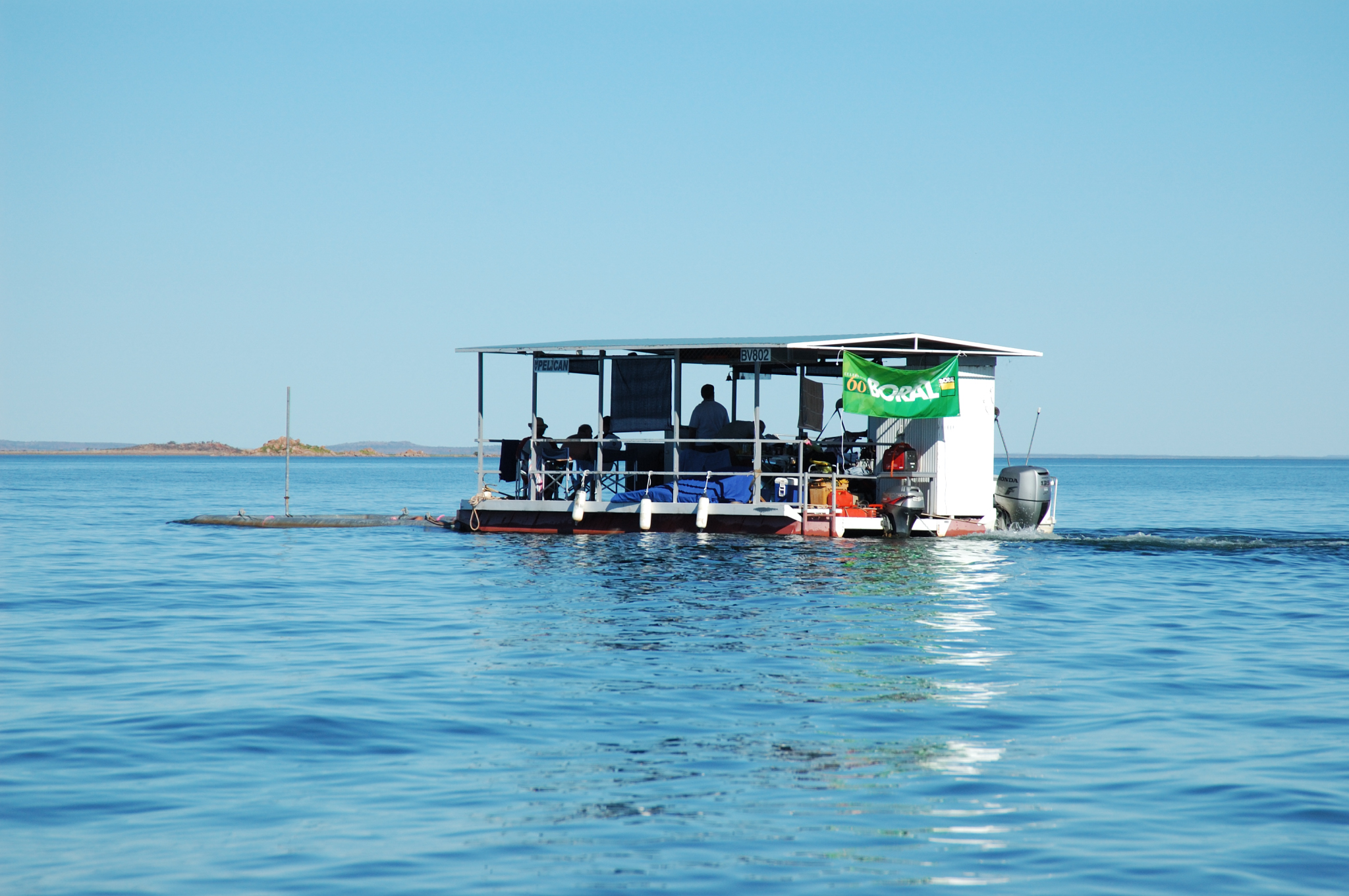 Kelly and Hughes were in constant communication to stay on the right course. After telling the Northern Land Council on which islands they planned to camp, they had to find the right ones. Jim had to keep the barge going on the course that Kelly charted.