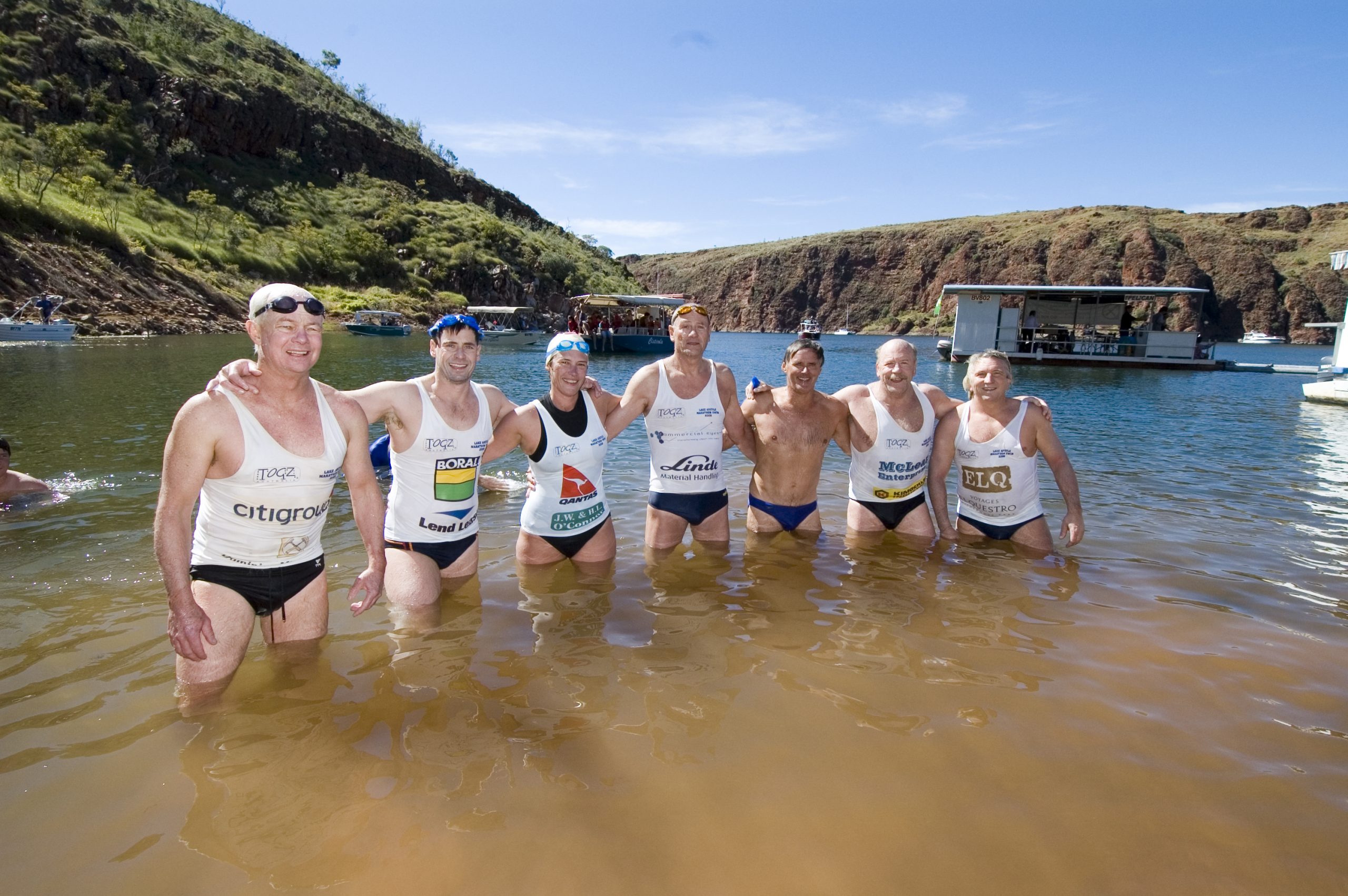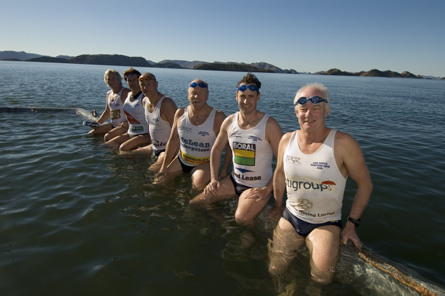 In June 2006, Kieran Kelly led a team of five other swimmers from Balmoral Beach Club in Sydney to the remote Kimberly region of Australia’s far north. Kelly along with Geraldine Hunt, Andrew Rosengren, Robert Johnson, Michael Munro and Jon Attwater arrived at Lake Argyle in Western Australia to take up a challenge – to be the first group of swimmers to cross 60 km of Lake Argyle, following the old Ord River water course.