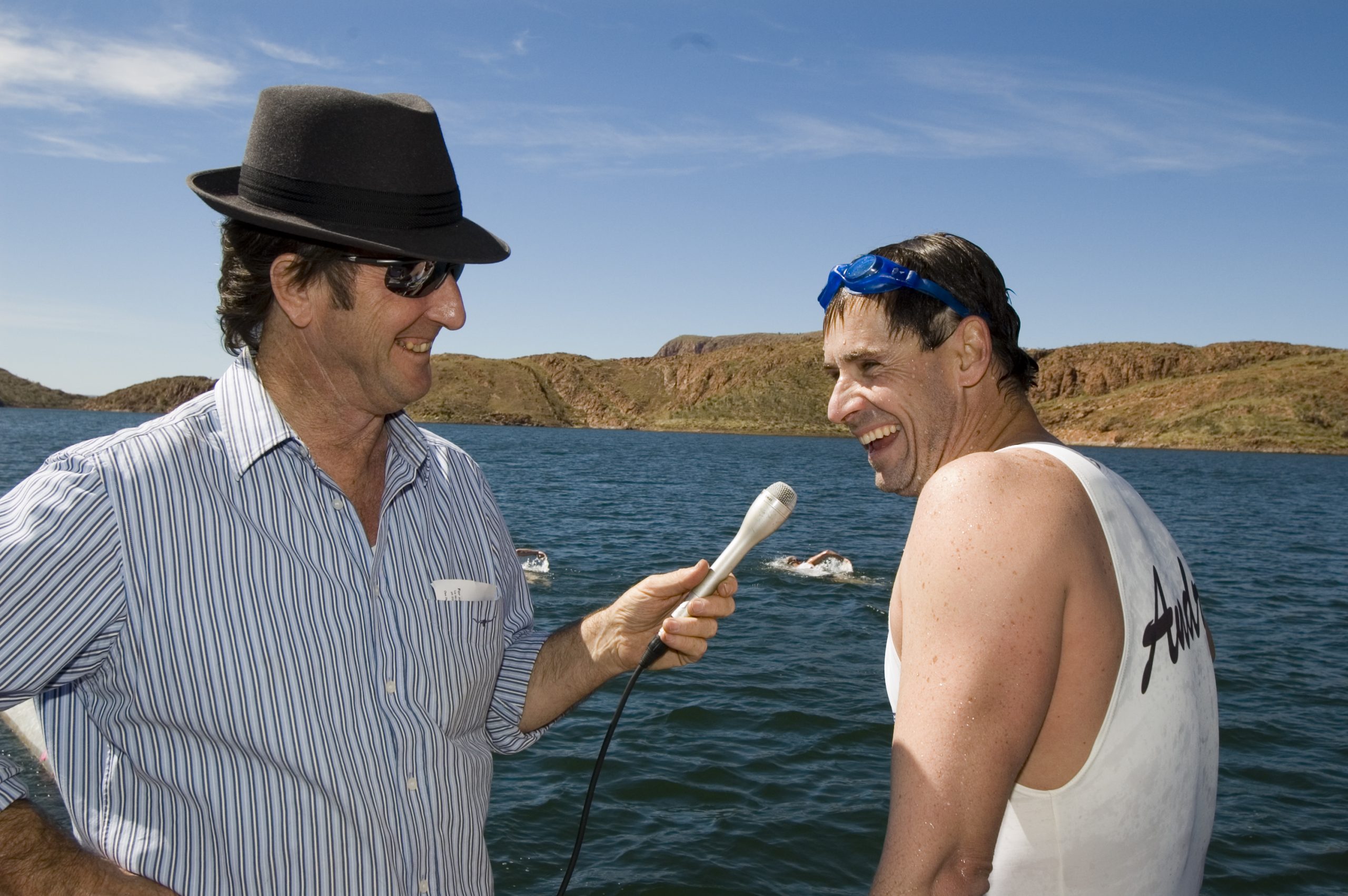Keen to find out, as he suspected, correctly as it turned out, that the swim would not proceed without help from Hughes, he rang Jim and talked to him about his proposal to swim the length of Lake Argyle. Jim responded, “Why would you want to do that? You can just use a boat.” And that was the beginning of a friendship between the two men.